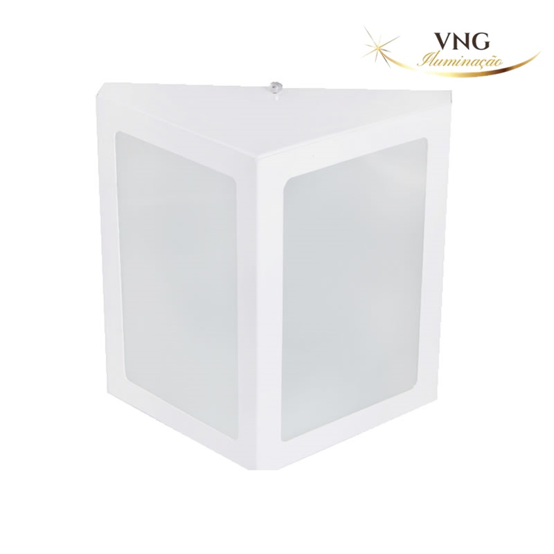 Arandela Menton Triangular em Alumínio, a arandela Triangular, sua fabricação 100% em alumínio, possui fechamento em vidro e tem pintura eletrostática a pó, que não enferruja, é resistente a sol, chuva e maresia.